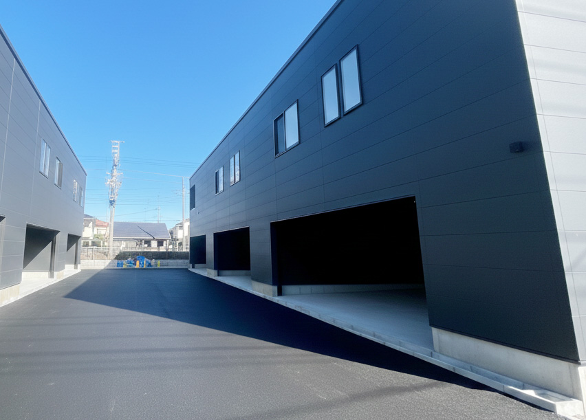 ・最大幅6.5m×奥行6.8m(壁芯) ・ハイスピードシャッター 幅5942mm×高さ2350mm ・200V EVコンセント ・100Vコンセント ・エアコン用コンセント ・換気扇 |