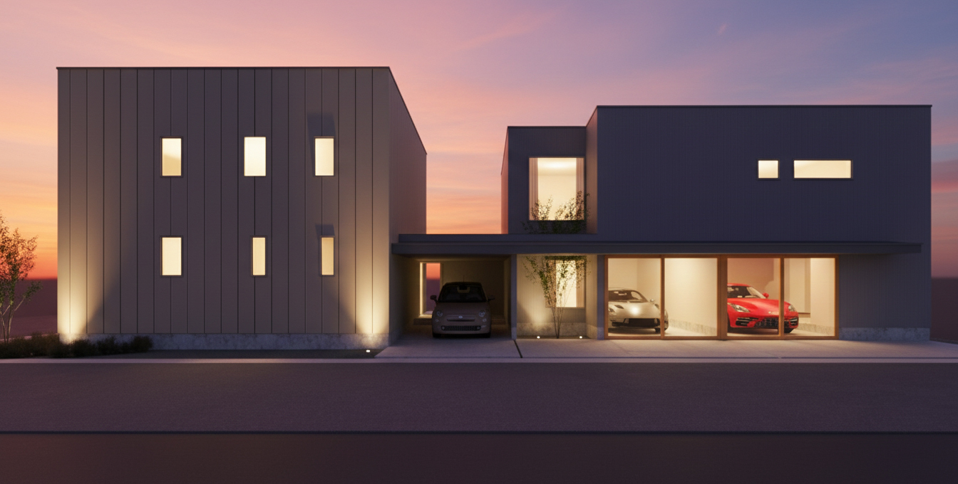 カーサ・ガラージュと建築家永井康晴氏との共作で、「美しく 心地良い 愛車のある暮らし」がテーマの作品となります。