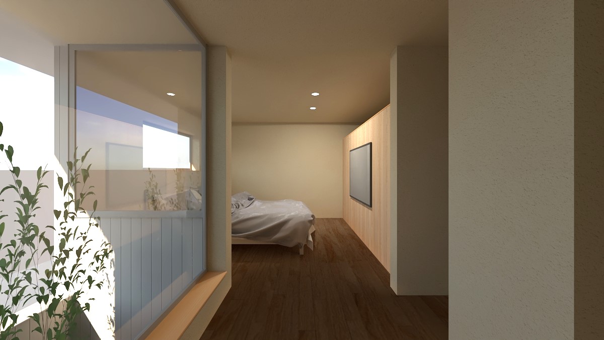 間接照明と壁面照明をメインに構成された心地の良い空間 バスルームは1616サイズ 吹き抜けから愛車を感じる2Fスペース 65.64㎡ |